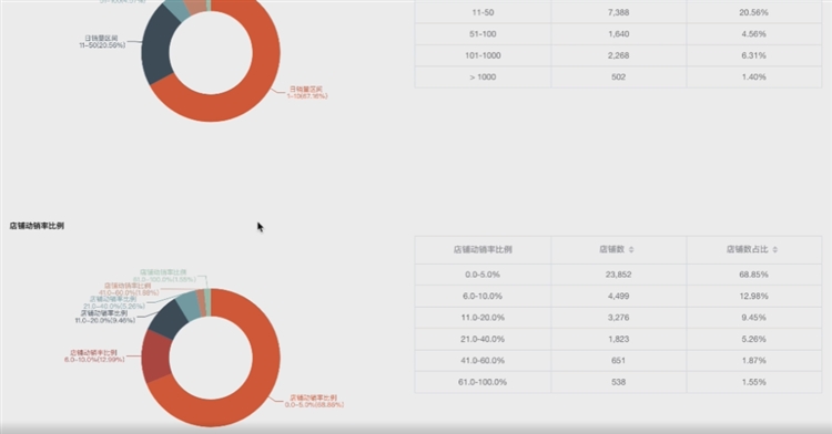 店鋪分析方面,則是從銷量、動銷比例、30天店鋪增量占比這三個方面來分析