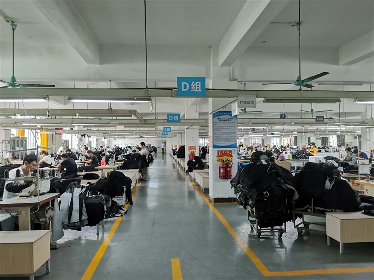 1688廣州“批零一體”牛仔褲生產(chǎn)工廠車間。
