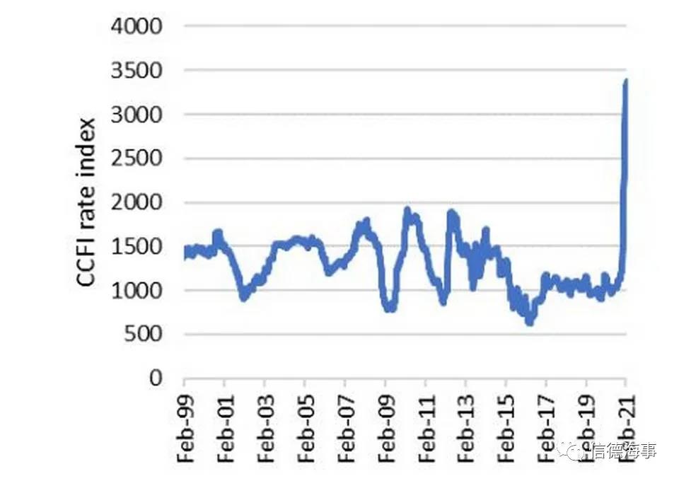 航運(yùn)咨詢機(jī)構(gòu)Sea Intelligence援引兩大歷史趨勢(shì)得出結(jié)論稱,集裝箱運(yùn)價(jià)的飆升可能會(huì)持續(xù)到2022年春天。美國(guó)航線的運(yùn)價(jià)可能會(huì)再提高25%。集裝箱運(yùn)價(jià)的飆升以及對(duì)集裝箱船舶和設(shè)備的高需求態(tài)勢(shì)可能至少會(huì)持續(xù)到明年春天。該預(yù)測(cè)源于Sea-Intelligence最新的一項(xiàng)分析。該機(jī)構(gòu)是通過(guò)兩類歷史數(shù)據(jù)做出的上述判斷。該機(jī)構(gòu)指出,自1998年以來(lái),根據(jù)上海出口集裝箱運(yùn)價(jià)指數(shù)SCFI的歷史數(shù)據(jù)顯
